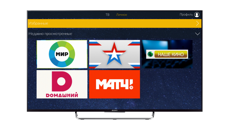 Избранные и недавно просмотренные каналы отображаются на дополнительной стене каналов. Чтобы перейти к ней, нажмите «Личное» или нажмите на пульте несколько раз кнопку ▶️ (вправо).