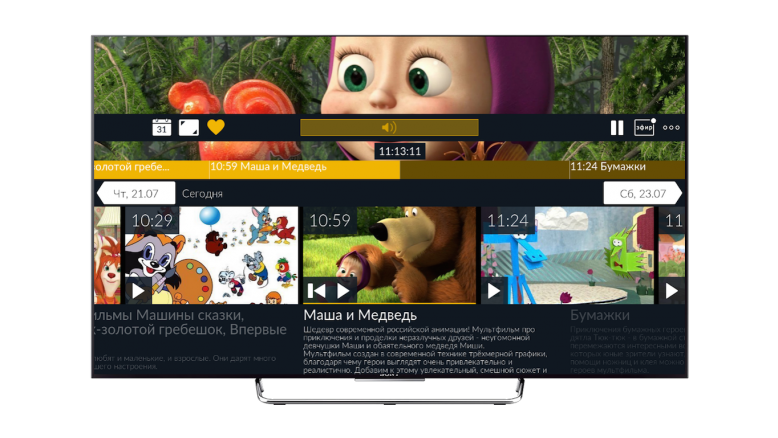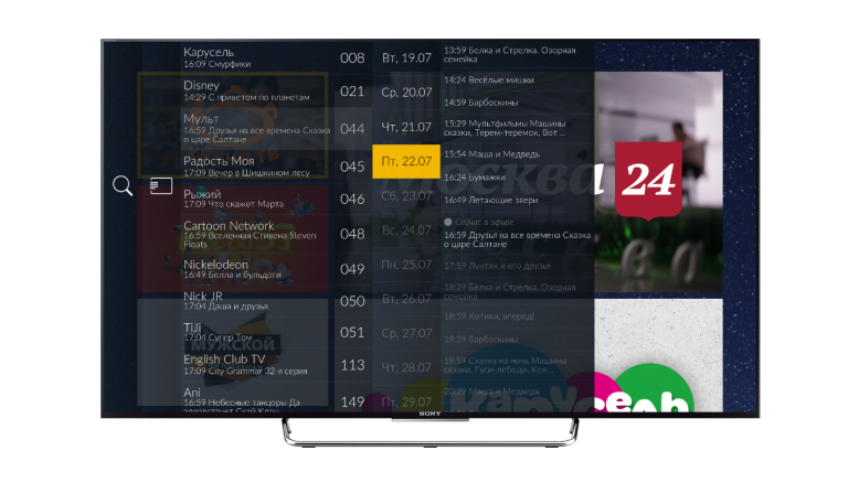 Эта иконка откроет список передач. В нем вы сможете ознакомиться с программой передач на выбранном канале или сразу перейти к нужной передаче из архива. Программа передач доступна на текущий день, до 7 дней назад и на 7 дней вперед.
