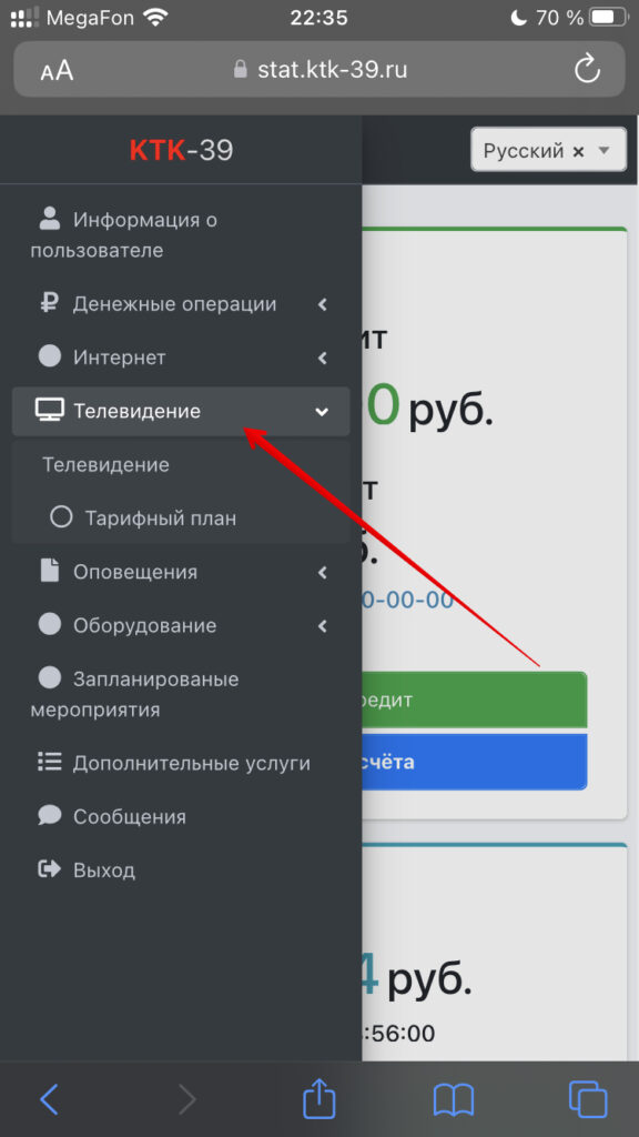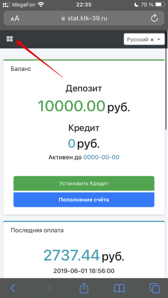 Выбираем 4 точки в левом верхнем углу (если вы зашли в личный кабинет с компьютера — этот шаг можно пропустить)