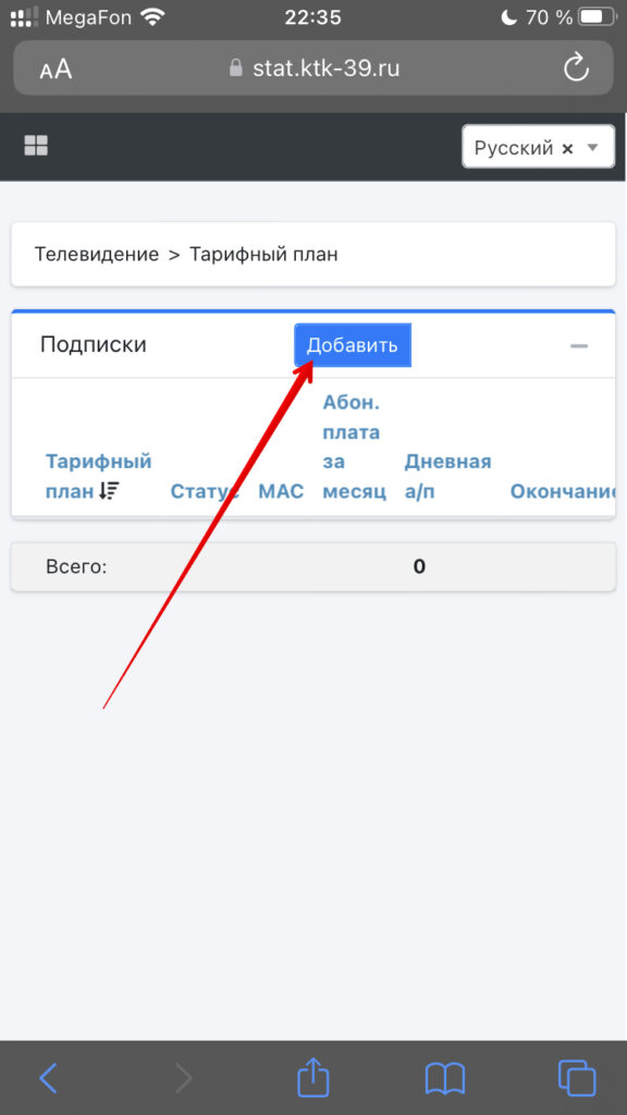Для выбора нужного Вам тарифного плана, нажимаете кнопку «Добавить», так как система подгружает список ВСЕХ доступных каналов, то может быть маленькая задержка с переходом на следующий этап
