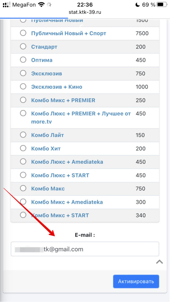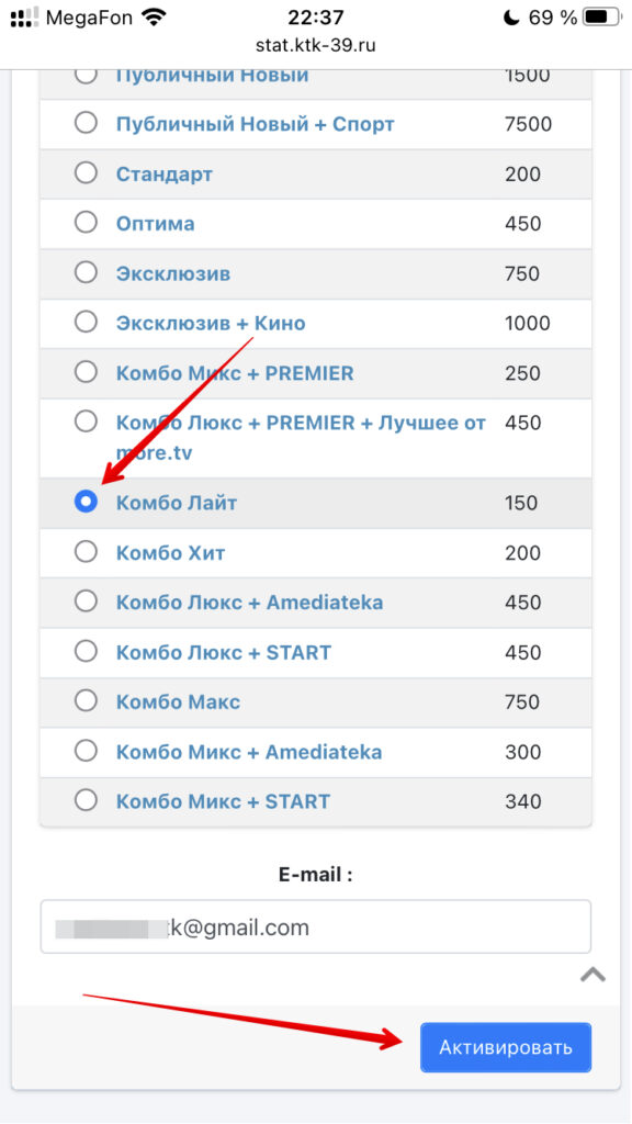 Для активации выбранного ТП, отметьте кружочек рядом с наименованием тарифного плана и после нажмите кнопку «Активировать»