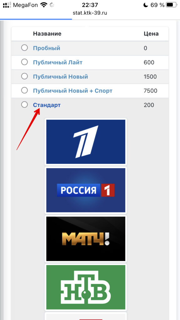 При нажатии на сам тарифнвй план, у вас откроется список каналов, который соответствует данному тарифному плану